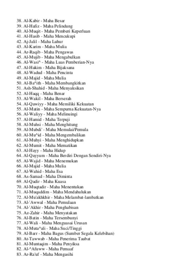 99 nama allah dan maksud dalam bahasa jawi. Asmaul husna dalam islam asmaul husna adalah sembilan puluh sembilan 99 asma nama allah swt yang terbaik. Asma membawa maksud nama dalam ejaan rumi dan dalam bahasa arab disebut اسماء الله الحسنى serta dikongsikan terjemahan makna bahasa melayu dan juga huraian melalui video youtube mp3 lagu atau zikir dan juga pdf file. Segala sesuatu yang ada di alam ini samada kerajaan kekuasaan kebesaran kekeyaan kemasyhuran dan segala galanya yang dimiliki sementara oleh manusia akan kembali semula kepada allah s w t. Di dalam bahasa arab bukan bahasa malaysia lalu direndam pada air yang dingin diberikan si anak.