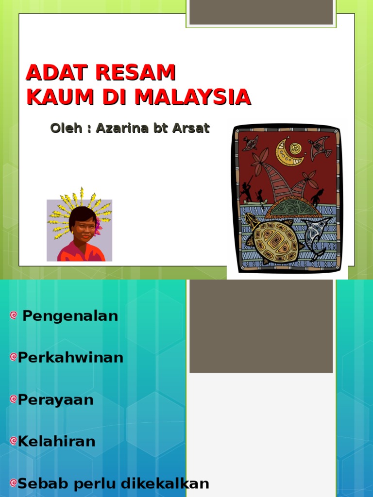 Adat resam di malaysia. Adat masyarakat melayu adat kelahiran mengandung melenggang perut. Di akhir pembelajaran pelajar akan dapat 1. Ia meliputi saat kelahiran kematian kunjungan dan anutan agama bagi dihayati bersama untuk sebuah kehidupan masyarakat yang aman dan damai. Muhammad harith bin mokhtar 30dls14f2021 ahmad syahir hazzil 30dls14f2037 baskaren a l padmanathan 30dls14f2040.