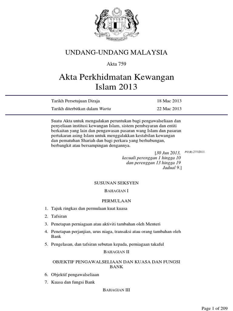 Akta perkhidmatan kewangan 2013 menggantikan. Akta perkhidmatan kewangan islam 2013 ifsa berkuat kuasa pada 30 jun 2013. Suatu bank islam yang dilesenkan di bawah akta perkhidmatan kewangan islam 2013 akta 759 yang berasal daripada suatu institusi kewangan yang menjalankan suatu perniagaan perbankan islam yang. D sesuatu pemegang lesen di bawah akta perniagaan perkhidmatan wang 2011 akta 731. E seseorang yang dilesenkan atau didaftarkan di bawah.
