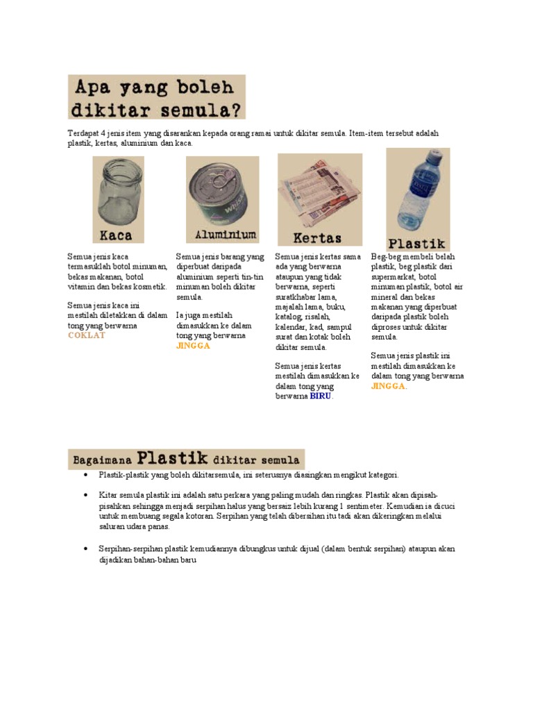 4 bahan asas iaitu plastik kertas aluminium dan kaca. Aluminium merupakan bahan yang boleh dikitar semula 100. Barang bahan apa yang boleh dikitar semula. Sesetengah bahan logam seperti timah dan aluminium.