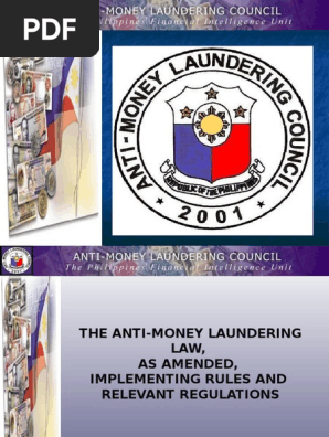 The country created an anti money laundering council amlc to ensure that the anti money laundering act amla is being observed by those within the financial industry. Money laundering is a crime whereby the proceeds of an unlawful activity as herein defined are transacted thereby making them appear to have originated from legitimate sources. Be it enacted by the senate and house of representatives of the philippines in congress assembled. Be it enacted by the senate and the house of representatives of the philippines in congress assembled.