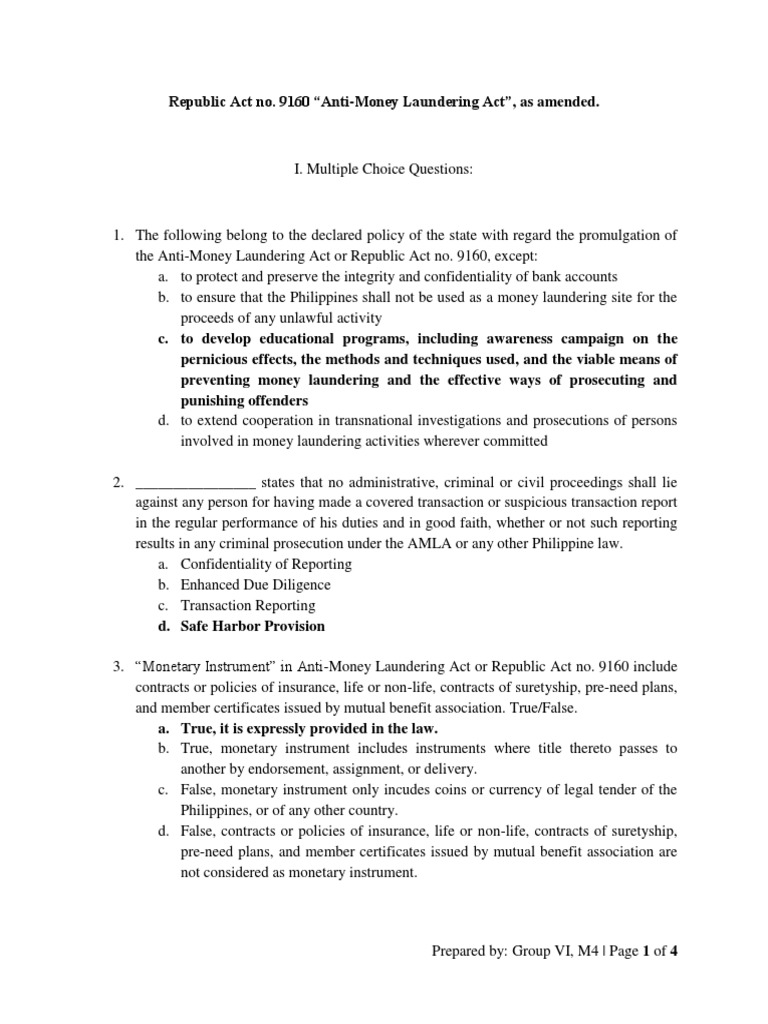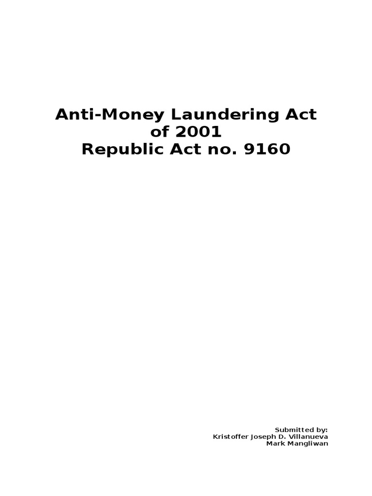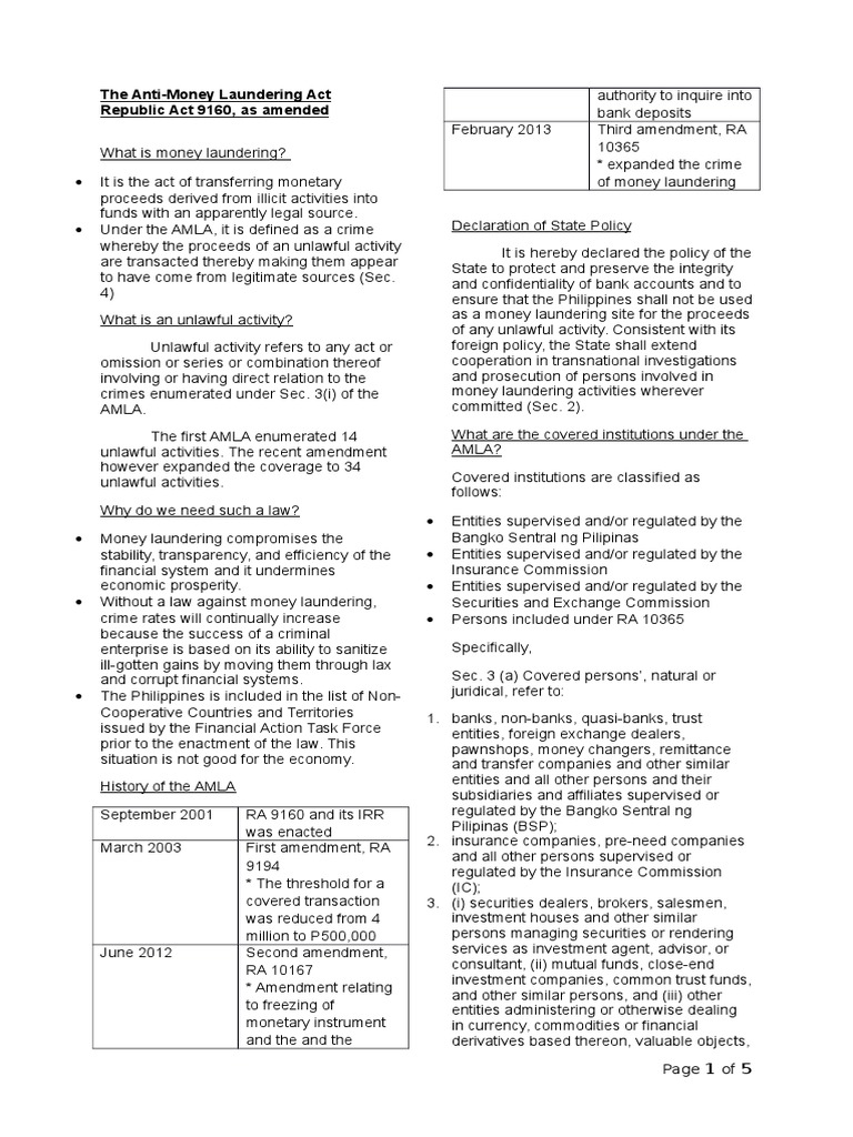 Anti money laundering act philippines reviewer. Be it enacted by the senate and the house of representatives of the philippines in congress assembled. 9160 the anti money laundering act of 2001 amla. Villanueva mark mangliwan anti money laundering act of 2001 ra 9160 policy. 9160 march 8 2002 anti money laundering act of 2001.