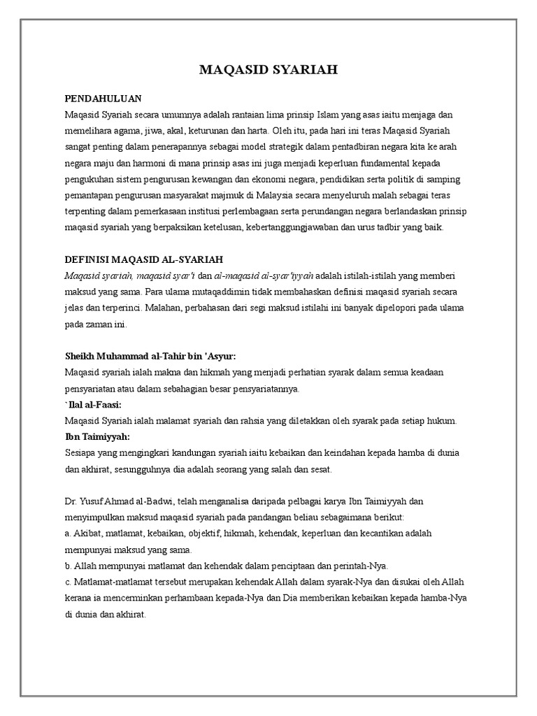 Apa itu maqasid syariah. Maqasid al shari ah terdiri dari dua kata yaitu مقا صد dan الشر يعة. Dalam kitabnya tersebut imam al syatibi sama sekali tidak memberi penjelasan atau pengertian mengenai apa itu maqasid syariah. Hampir selalu kita terdengar perkataan maqasid syariah namun mungkin ada yang tidak pasti lagi apakah sebenar yang dimaksudkan dengannya. Maqasid syariah juga mempunyai kepentingan yang tersendiri dalam mengukur dan mempertimbangkan sesuatu perkara demi menjamin kemaslahatan dan menolak keburukan.