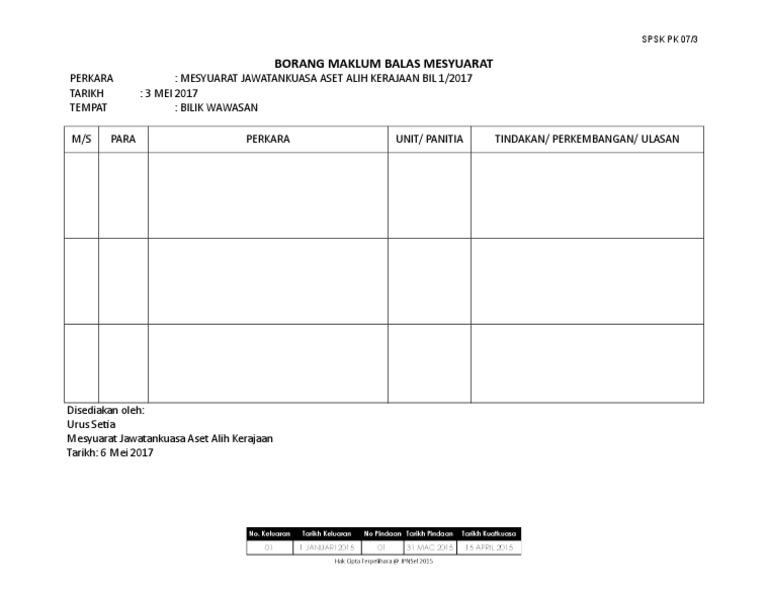Carta alir pengurusan maklum balas. Borang pk08 6 instrumen penilaian pengajaran dan pembelajaran guru 2011. Spsk pk 07 3 borang maklum balas mesyuarat perkara. Lampiran dan borang spsk 2017 lampiran dan.