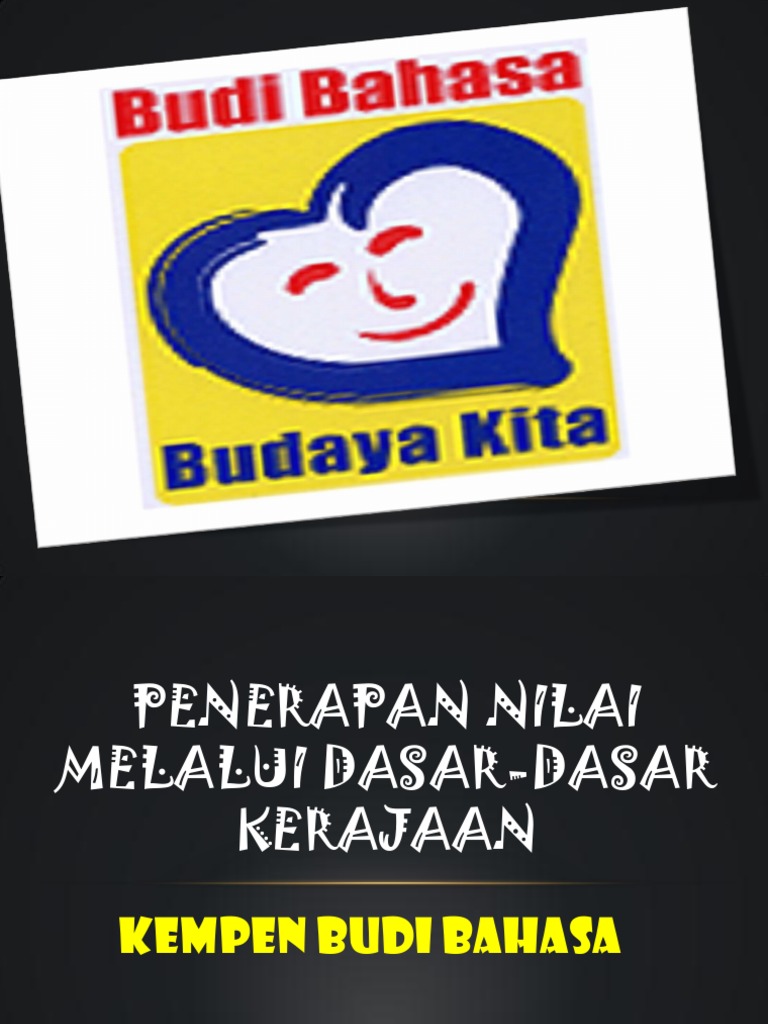 Budi bahasa budaya kita. Sejak kebelangkangan ini nilai nilai berbudi bahasa dan sopan santun semakin terpinggir dan tidak dipandang tinggi oleh masyarakat khususnya. Tegak rumah kerana sendi runtuh sendi rumah binasa sendi bangsa ialah budi runtuh budi runtuh lah bangsa budi bahasa budaya kita merupakan satu ungkapan yang tidak asing lagi didengar oleh rakyat malaysia. Takdir allah swt menentukan berlaku beberapa peristiwa mungkar dan kejadian yang memperlihatkan kegagalan kita mematuhi hukum allah dan penyelewengan akhlak manusia mengakibatkan terserlah salah laku dan perlanggaran nilai murni akhlak islamiah dalam kalangan masyarakat kita. Tambahan pula kempen ini telah diuar uarkan melalui pelbagai media sama ada media elektronik atau media cetak.