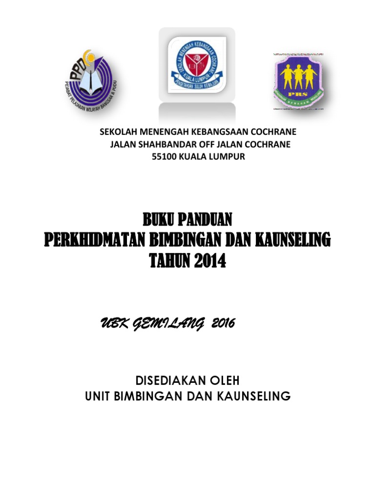 Bahagian pengurusan sekolah harian telah menerbitkan sebuah buku panduan pelaksanaan perkhidmatan bimbingan dan kaunseling sekolah pada 2015 dan jpn mula mengedarkan pada minggu ini. Mengikut buku panduan ubk tahun 2015 pada tanggungjawab pentadbir terhadap gbk pada muka surat 23 hanya menjelaskan bahawa memastikan gbk sepenuh masa tidak diberi jadual mengajar dan tugas lain yang boleh menjejaskan perkhidmatan bimbingan dan kaunselingnya seperti penyelaras kokurikulum ketua jurulatih permainan ketua penasihat kelab guru biasiswa dan kerja kerja pengkeranian yang lain. Pepatah mengatakan orang berbudi kita berbahasa. Panduan penubuhan kelab bimbingan dan kaunseling menyedari hakikat bahawa kemahiran berkomunikasi amat penting dan diberi penekanan pada masa ini kelab bimbingan dan kaunseling di sekolah wajarlah digerakkan dengan lebih aktif bagi memenuhi tuntutan tersebut.