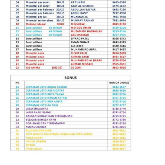 Chip murottal speaker al qur an 16gb full buku panduan chip mmc speaker quran dengan kapasitas 16gb full dengan banyak bonus bisa per ayat per surat per halaman per juz repeat sepuasnya. Metode quantum reading quran merupakan alat bantu bagi anda yang pemula ataupun tidak cukup banyak waktu dalam belajar al quran sehingga anda bisa tartil dalam membaca al quran. Charger kabel data. Bonus buku digital qaida noorania untuk belajar hijaiyah seperti iqro bonus buku digital kumpulan doa hisnul muslim bonus buku digital sahih bukhari dalam bahasa arab.