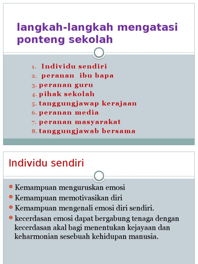 Antara cara untuk mengatasi gejala ponteng sekolah ialah ibu bapa perlu memainkan peranan untuk mendidik dan memberi perhatian terhadap anak anak supaya tidak terlibat dengan gejala gejala yang tidak sihat seperti ponteng sekolah. Gejala ponteng dan cara mengatasi may 5 2016 thefour2016 pada zaman mengejar wawasan 2020 kini didapati gejala ponteng kelas oleh para pelajar di sekolah mahupun di ipta ipts semakin berleluasa. Sesuatu yang memerlukan penyelesaian perkara keadaan yang menimbulkan latar belakang sekolah. Langkah langkah mengatasi ponteng sekolah 1.