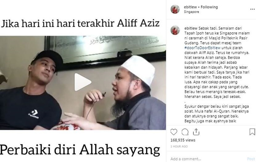 Ceramah ustaz ebit lew terkini. Biarpun ustaz shahrizan telah menjelaskan bahawa posting tersebut termasuk semua orang buat benda yang sama dan tidak menyebut nama individu terlibat secara spesifik ada yang beranggapan ia ditujukan kepada ustaz ebit lew. Dipetik dari fb ustaz ebit lew. Menerusi perkongsiannya di instagram ebit lew telah singgah ke rumah salah seorang daripada peserta program ceramahnya ketika berkunjung ke melaka. Ceramah bersama ustaz ebit lew pada 17 disember 2016 di masjid at takwa taman tun dr ismail kuala lumpur.