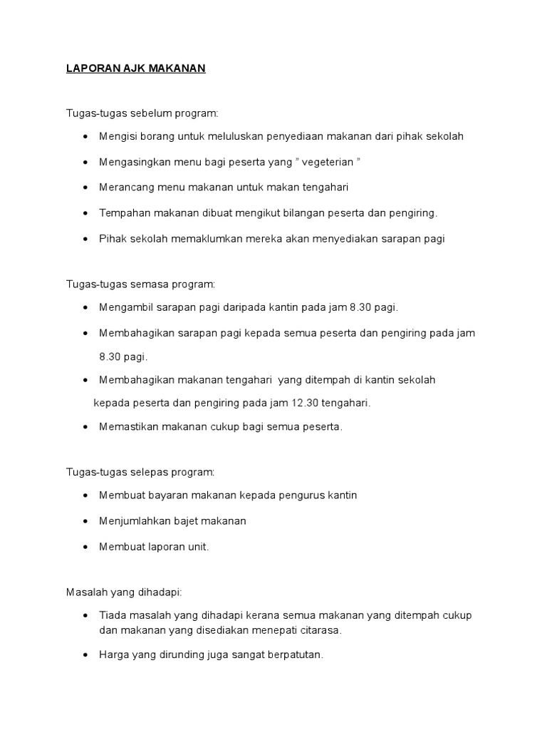Contoh Laporan Ajk Makanan Program