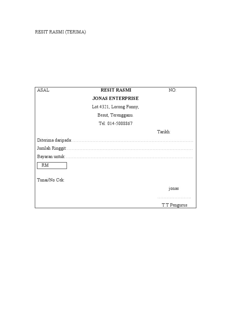 Contoh Resit Bayaran Tunai