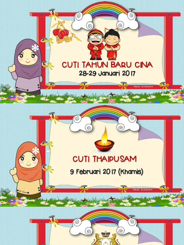Berikut adalah senarai perincian kalendar cuti umum malaysia 2017 cuti negeri di malaysia dan cuti serta takwim penggal persekolahan bagi tahun 2017.