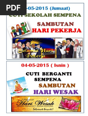 Merujuk kepada perkara di atas adalah dimaklumkan bahawa pihak pengurusan akan ditutup pada. Hari wesak merupakan hari perayaan penganut agama buddha di seluruh dunia. Assalamualaikum dan salam sejahtera sukacita dimaklumkan bahawa 1 mei 2015 jumaat dan 3 mei 2015 ahad adalah hari cuti umum bagi negeri johor sempena hari pekerja dan hari wesak. Wesak juga dieja vesak adalah hari yang disambut oleh penganut buddha di seluruh dunia.