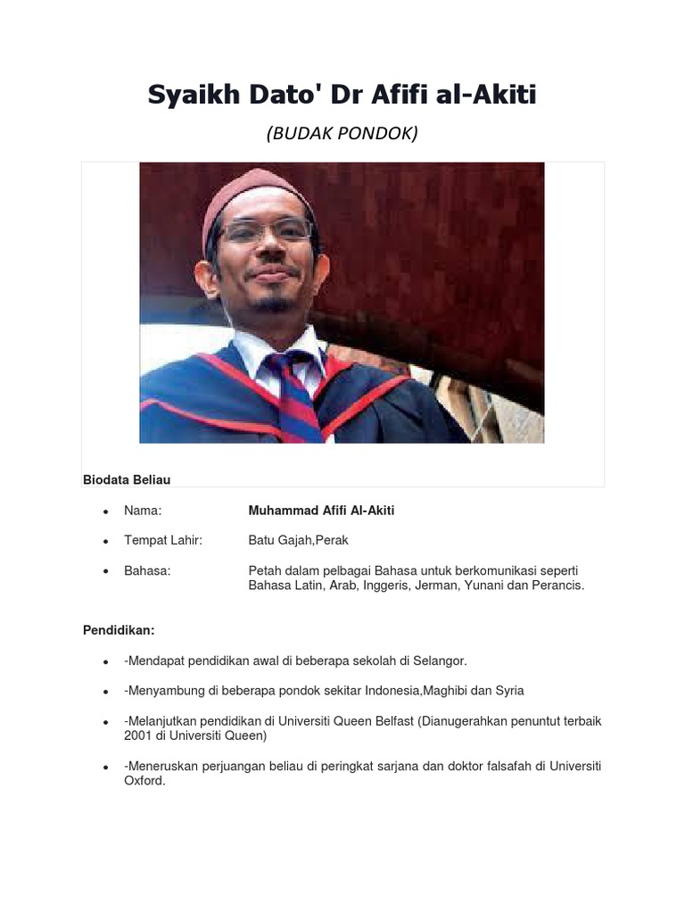 Afifi al akiti born 1976 also known as shaykh afifi is the kfas fellow in islamic studies at the oxford centre for islamic studies. Ramai orang malaysia terutama nya muslim yang tidak begitu mengenali dr. Mereka berdua merupakan lepasan pondok yang akhirnya berjaya mencapai tahap pengajian yang tinggi di institusi yang masyhur. Google memang hebat dan bijak.