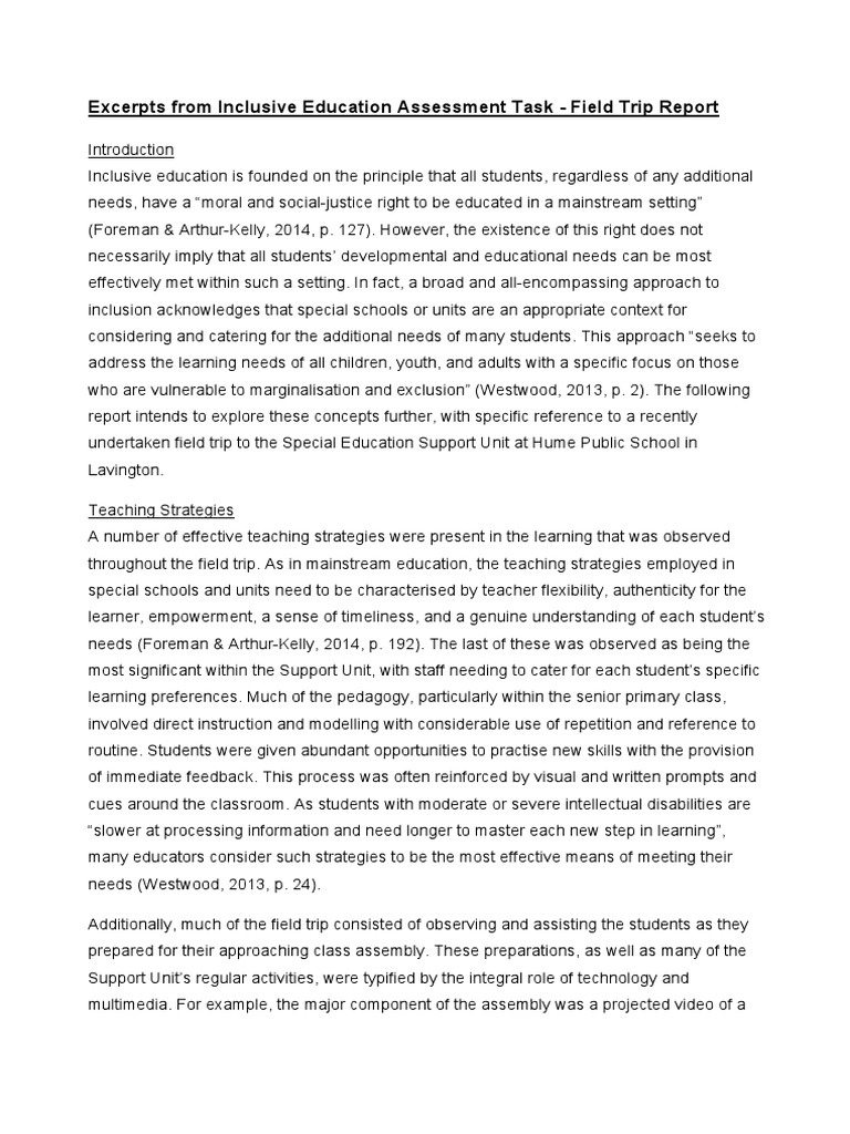 Example Field Trip Report Format