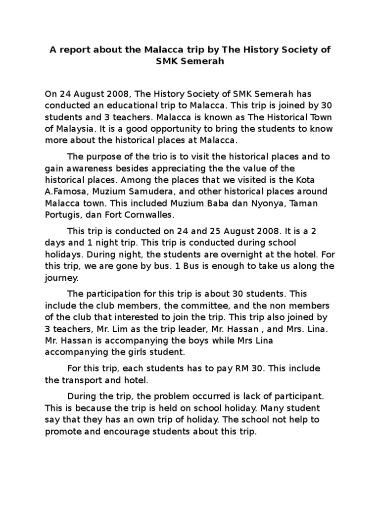 Example of field trip report essay. Use them as a guideline or a model for preparing your own reports. Sample essay on field trip report. This particular report explores a field trip that took place at the fremantle aboriginal heritage walking tour. Field trip essay sample september 8 2017 by admin essay samples free essay samples.