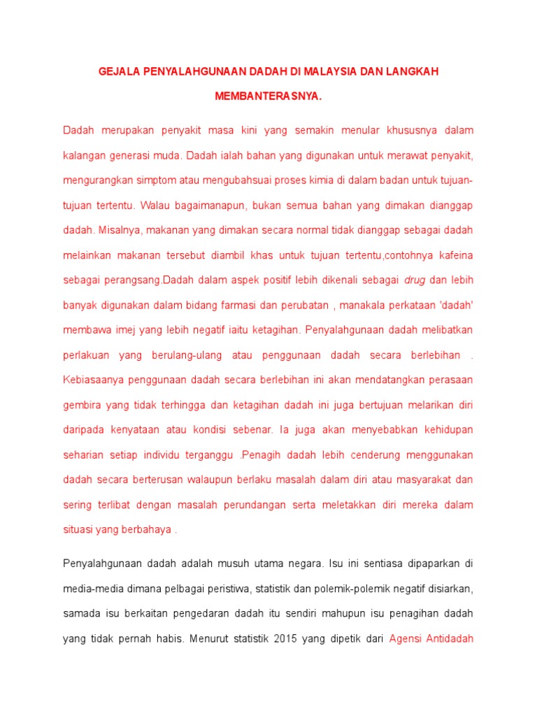 Umum tahu kesannya boleh mendatangkan kemudaratan kepada kesihatan fizikal mental emosi dan tingkah laku. Dadah dan ancaman di malaysia di malaysia penyeludupan pengedaran penyalahgunaan dan penagihan dadah telah menjadi satu isu besar yang memberikan ancaman kepada keselamatan negara. Berikut merupakan tugasan video berkumpulan bagi subjek pengajian am yang disediakan oleh pelajar pelajar tingkatan 6 bawah tahun 2020 smk sandakan ii. Kebiasaannya penagih dadah akan menghabiskan masa untuk melakukan aktiviti seperti mencari pengedar membeli dan menggunakan dadah begitu juga mendapatkan wang bagi membeli dadah.