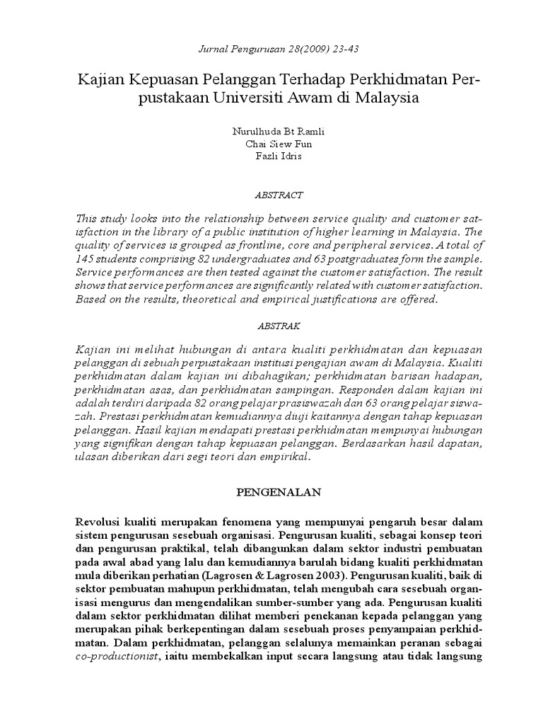 It s a nice feature that enables you to customize your reading material but it s a bit of a hassle and is really designed for readers who want printouts. Bagi mencapai matlamat kajian ini adalah wajar diperhalusi fungsi dan peranan perpustakaan awam. Kepuasan pelanggan terhadap kualiti perkhidmatan homestay di melaka. Pengukuran kepuasan pelanggan terhadap kualiti perkhidmatan perbandaran 132 working well.