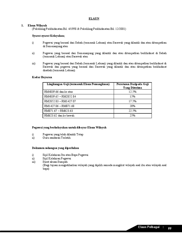 Dengan berkuat kuasanya pekeliling perkhidmatan ini. Bayaran insentif wilayah biw biasanya dibayar kepada pegawai yang berkhidmat di wilayah selain daripada wilayah asal. Kenaikan kadar bantuan sara hidup tujuan. Lingkungan gaji bagi menetapkan kadar bayaran insentif wilayah di perenggan b1 lampiran g pekeliling perkhidmatan bilangan 12 tahun 2001 dipinda seperti berikut.