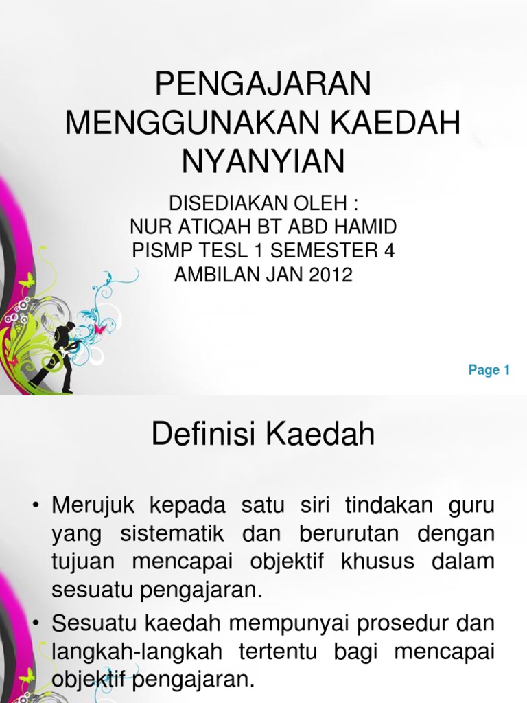 Kaedah nyanyian dalam pengajaran pdf. Kaedah pengajaran yang berkesan merupakan tonggak kejayaan seseorang pelajar. Apakah kaedah pengajaran dan pembelajaran yang diaplikasikan oleh pensyarah. Objektif kajian kajian ini bertujuan meninjau aspek keberkesanan lagu lagu tarian sewang dalam pengajaran dan pembelajaran bahasa malaysia. Kaedah nyanyian guru membuat penerangan kepada pelajar dalam sub topik yang akan diajar guru dan pelajar akan menyanyi bersama sama tanpa menggunakan muzik baris demi baris atau rangkap demi rangkap guru akan memasangkan lagu dan bernyanyi bersama sama dengan pelajar.