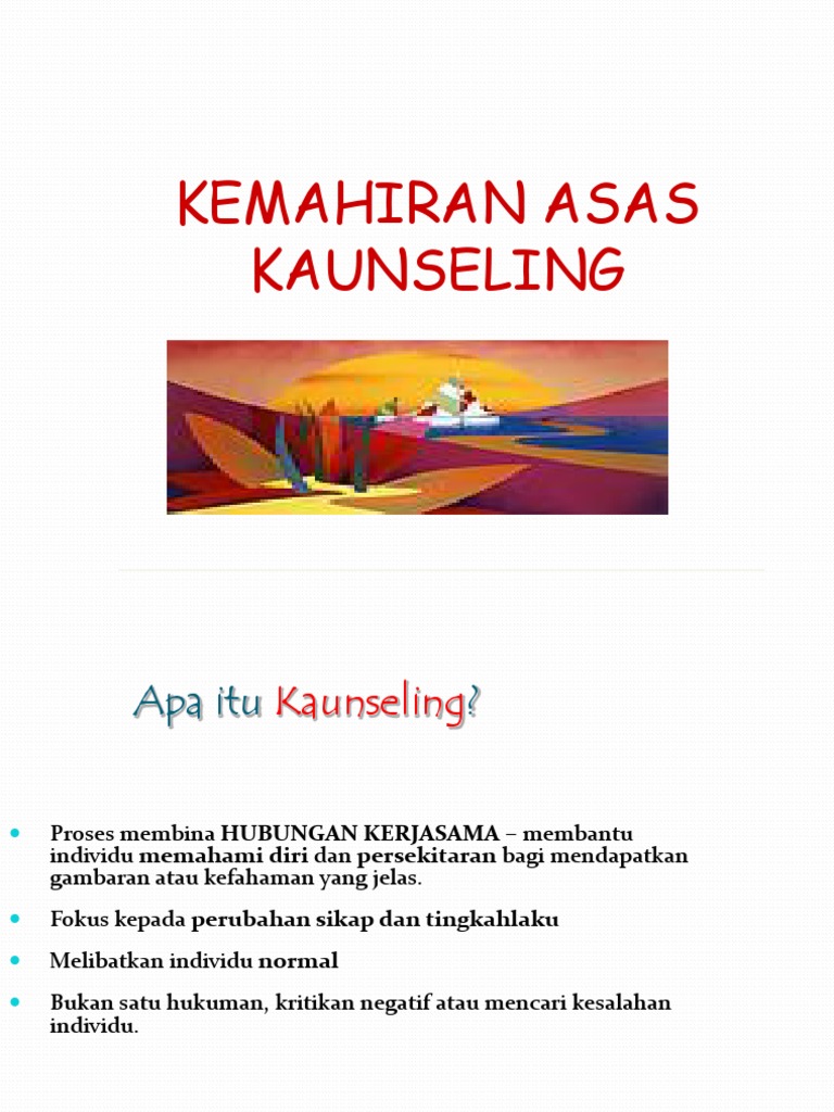 Kemahiran asas kaunseling pdf. Kemahiran asas tersebut sangat penting dimiliki kaunselor karena merupakan nadi dalam. Abdul syaharizam bin abdul aziz d20142069569 muhammad faiz bin jamaludin d20142069573 nadzirah binti buang d20142068903 siti hanum binti tunut d20142068875. Universiti sains islam malaysia usim. Kemahiran asas kaunseling dr sapora sipon universiti sains islam malaysia usim pengenalan kaunselor.