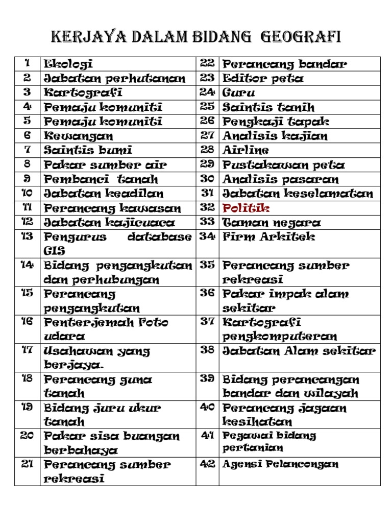 Umpamanya ada orang yang berminat dalam bidang sosial. Prospek kerjaya dalam bidang ini adalah luas seperti ahli statistik jurutera sistem pegawai bank pegawai perancang. Semua kerjaya yang kami senaraikan ini tidak akan wujud tanpa sumbangan seorang guru. Ahli matematik mencari pola memformulasikan konjektur yang baru dan menghasilkan fakta dengan deduksi rapi dari aksiom dan definisi yang dipilih dengan baik.