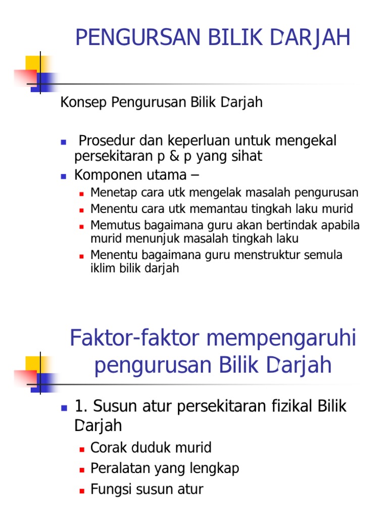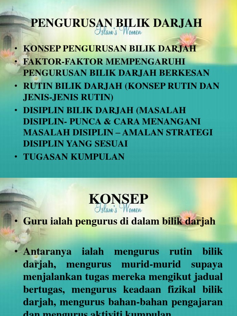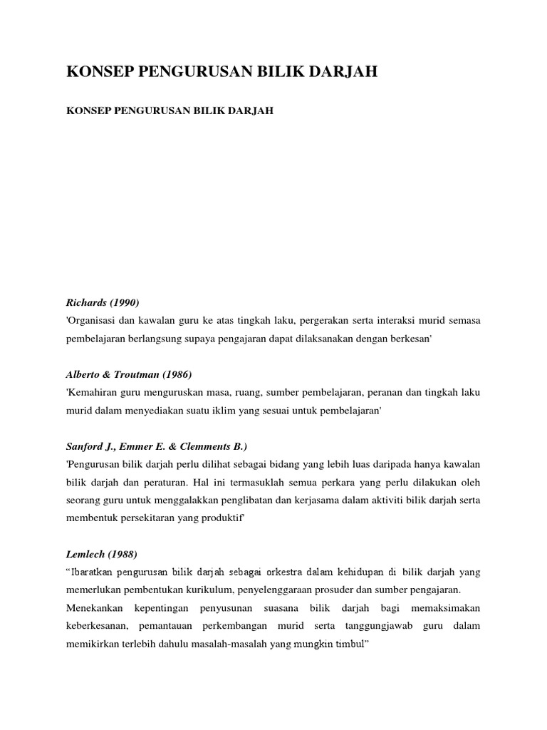 Konsep pengurusan bilik darjah scribd. Organisasi dan kawalan guru ke atas tingkah laku pergerakan serta interaksi murid semasa pembelajaran berlangsung supaya pengajaran dapat dilaksanakan dengan berkesan. 36 guru di amerika menyatakan bahawa mereka tidak akan menjadi guru sekiranya mereka tahu akan menghadapi masalah dalam. Ramai yang mengatakan pengurusan bilik darjah merupakan aspek yang paling sukar. Konsep proses untuk memastikan pelajaran dalam bilik darjah dapat berjalan dengan lancar walaupun pada masa yang sama berlaku gangguan daripada tingkahlaku murid.