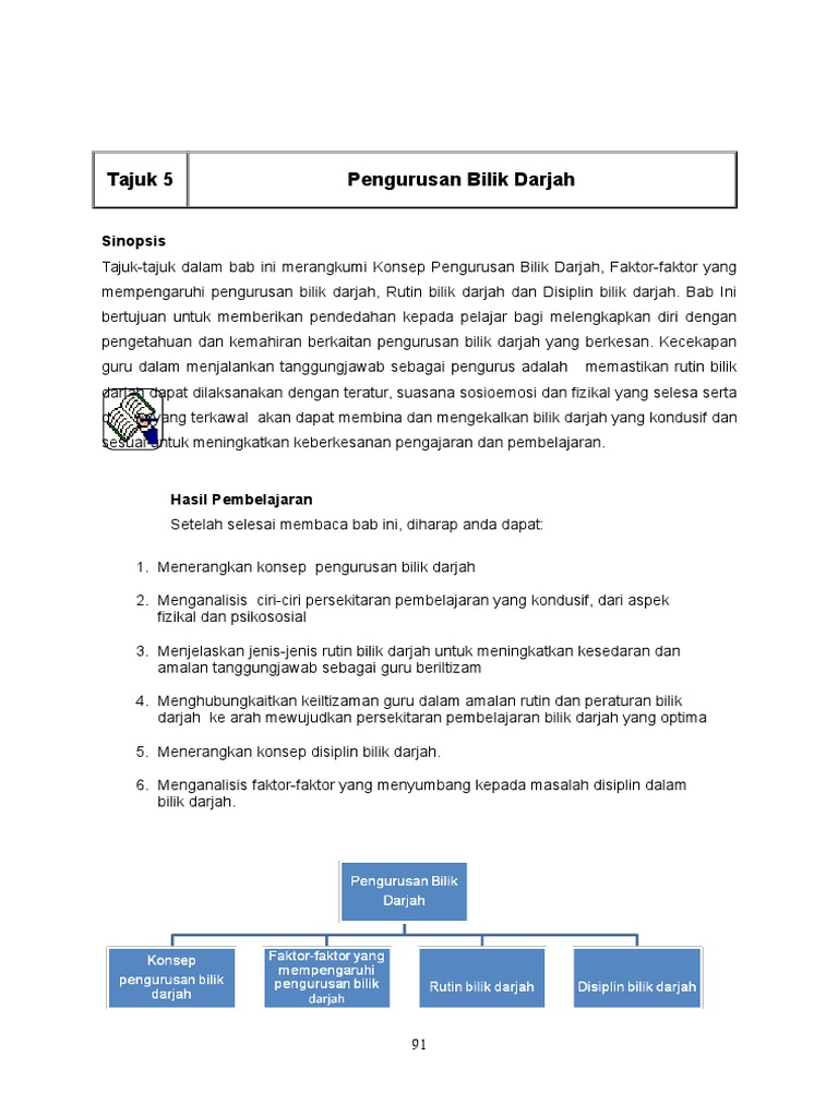 Ibaratkan pengurusan bilik darjah sebagai orkestra dalam kehidupan di bilik darjah yang memerlukan pembentukan kurikulum penyelenggaraan prosuder dan sumber pengajaran. Pengurusan bilik darjah memerlukan rutin bilik darjah. Konsep pengurusan disiplin bilik darjah. Modifikasi tingkah laku b.