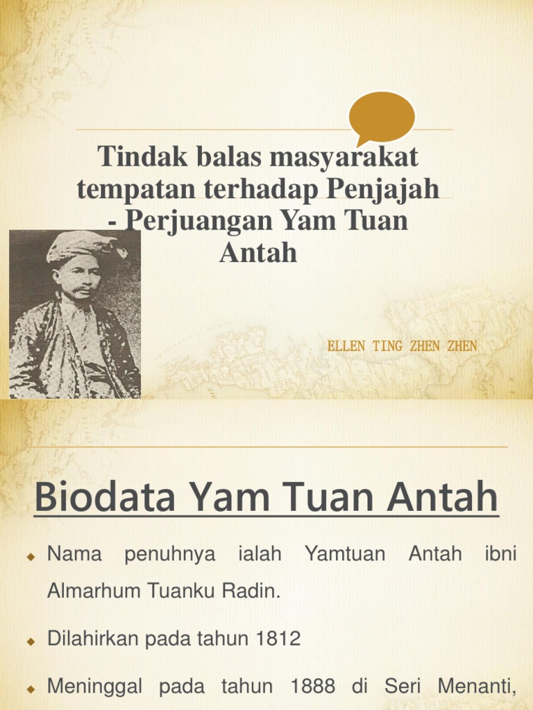 Latar belakang yamtuan antah negeri sembilan. His son tuanku muhammad shah succeeded him and modernised his state. Sebelum itu yang di pertuan besar negeri sembilan dikenali sebagai yang di pertuan besar seri menanti dan menjadi raja memerintah di tanah jajahan adat meliputi seri menanti inas terachi ulu muar gunung pasir dan. Semasa kemangkatan yamtuan imam telah berlaku perbalahan antara tuanku antah putera yamtuan radin dengan tunku ahmad tunggal putera yamtuan imam. Ii penentangan yamtuan antah di negeri sembilan latar belakang tunku antah ialah anak raja radin yamtuan besar negeri sembilan 1833 1861 tahun 1875 yamtuan antah dilantik sebagai yamtuan seri menanti sebab penentangan beliau menentang campur tangan british di sungai ujong kerana menggugat kedaulatan bangsa.