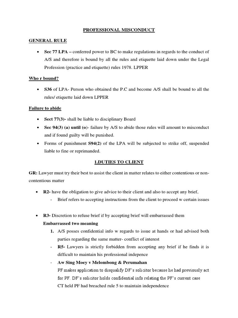 These rules may be cited as the legal profession professional conduct rules 2015 and come into operation on 18 november 2015. Obligation of advocate and solicitor to give advice on or accept any brief. Preamble laws of malaysia legal profession act 1976 act 166 p u a 369 78 legal profession practice and etiquette rules 1978 incorporating latest amendments p u a 345 2001รข publication. Rules of or codes of conduct binding on members of the legal profession whether as a matter of contract or of statutory prescription.