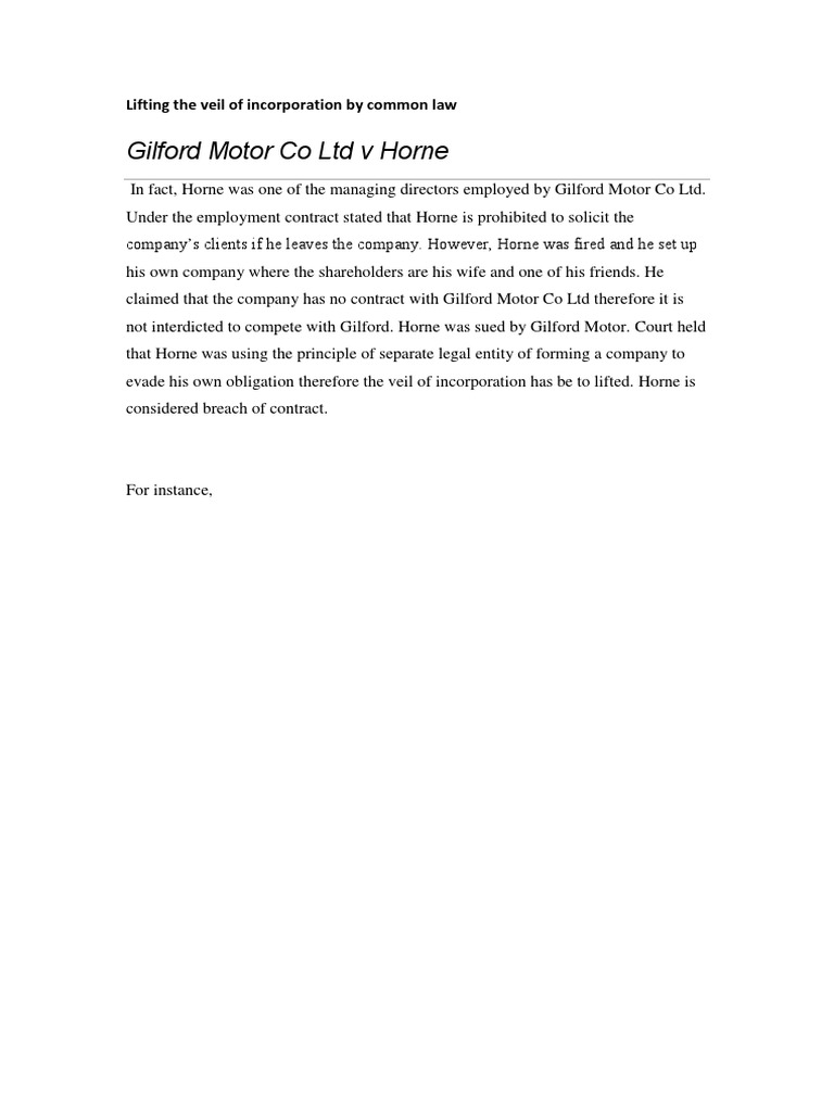 Doctrine of lifting the veil received further development in the case antonio gramsci v stepanovs 2011 nyombi 2014. The incorporation of a company creates a separate person in law.