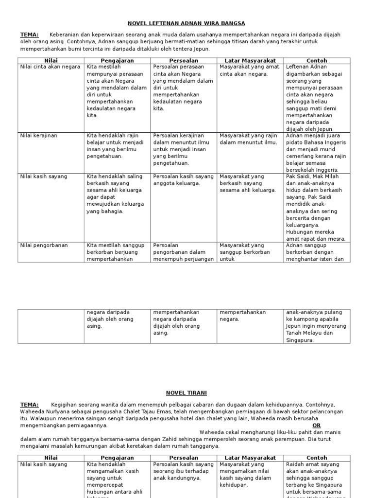 Novel leftenan adnan tingkatan 4 nilai dan pengajaran. Novel dan komsas novel tingkatan 4. Klik di sini teknik plot. Semoga perkongsian nota nota rujukan bahasa melayu contoh contoh karangan. 2 darah daging anak dan saudara mara daripada keturunan sendiri.