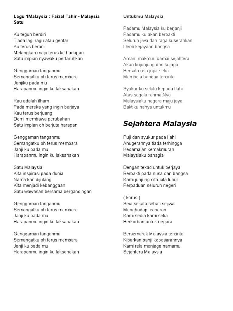 Chorus ku malaysia malaysia ku pertahan sepenuhnya malaysia. Lirik lagu negaraku faizal tahir lagu patriotik lirik lagu negaraku faizal tahir. Lagu ni best sebab melodi die best. Aku pertahan sepenuh jiwa dan raga oh tanah airku aku berikan semua dan sesungguhnya oh tanah airku.