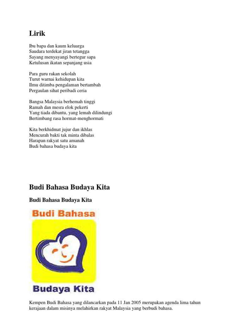 Poster budi bahasa budaya kita. Budi bahasa budaya kita kita budaya bahasa budi. Budi bahasa budaya kita. Kempen budi bahasa budaya kita adalah satu gelombang yang diharap akan mengembalikan rakyat kepada asas hidup berbudaya negara ini. Budi bahasa budaya kita.