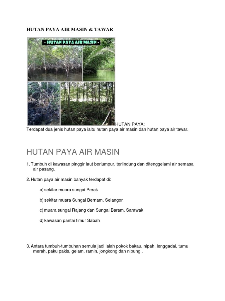 2 hutan paya air masin paya bakau hutan paya air tawar. 2 pokok yang tumbuh biasanya tinggi. Tumbuhan hutan paya air masin berbeza beza mengikut jarak dari laut. View my complete profile.