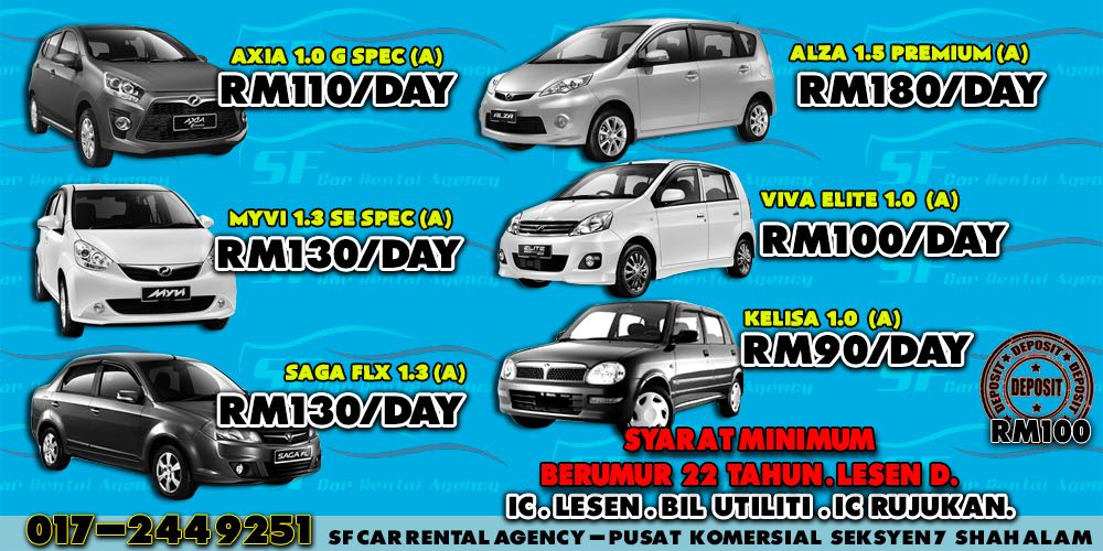 Ini adalah bertujuan bagi menghargai para pelanggan kereta sewa mereka khususnya bagi mereka yang tinggal di area kawasan shah alam klang subang dan sekitar kawasan kawasan yang berhampiran. Kereta sewa bukit jelutong shah alam. Kereta sewa subang bistari. Sewa kereta axia murah ukm rm7 00 jam.