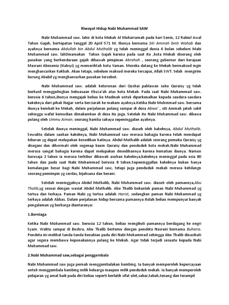Skema riwayat hidup nabi muhammad saw. Sesungguhnya nabi muhammad merupakan satu anugerah dan kurniaan allah swt kepada umat manusia untuk menunjukkan jalan yang lurus dan benar. نبي محمد صلى الله عليه وسلم adalah pesuruh allah yang terakhir. Like on facebook tweet on twitter plus on google. Nabi muhammad saw rasulullah saw lahir.