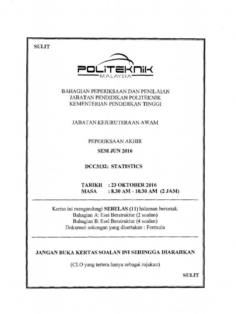 Soalan Final Exam Politeknik Jabatan Kejuruteraan Awam