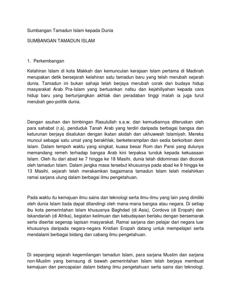 Melihat potensi yang terdapat dalam tamadun islam dan memberi input bagi pembinaan tamadun malaysia. Titas tamadun islam pandangan semesta dalam tama. Una ucena2010una ucena2010 july 14 2013 3 penerimaan secara damai dan sejahtera. Tamadun islam telah memberi sumbangan terbesar dalam bidang farmasi.