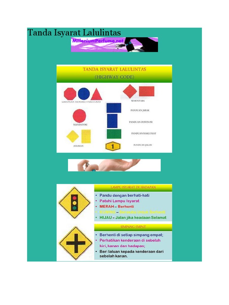Tanda isyarat lalu lintas. Oleh itu amat penting untuk mempelajari mengetahui dan memahami makna setiap tanda tanda isyarat lalu lintas yang digunakan dijalan raya sepertimana yang telah dikategorikan di bawah kaedah 5 kaedah lalulintas 1985. Tanda isyarat lalulintas sementara. Tanda isyarat lalulintas memberitahu. 22 thn 200919 03 2010 23 34 52uu no.