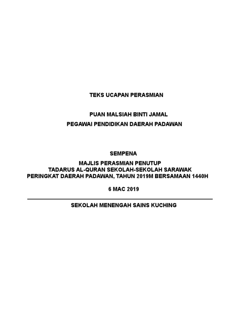 Panduan untuk perasmian penutup mtq by faizal saad. Saya akhiri ucapan saya dengan kalimah bismillah hirrahman. Perasmian nilam 2017 1 perdana menteri 1 perhimpuna rasmi kokurikulum 2017 1. Teks pengerusi majlis tilawah al quran mtq bismillahirrahmanirrahim assalamualaikum wbt.