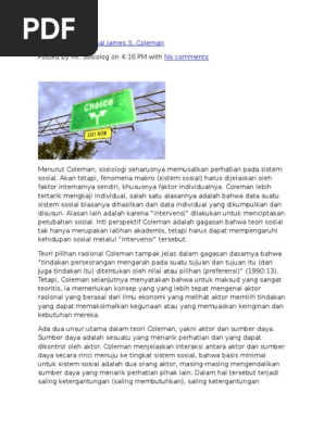 Teori pilihan rasional merupakan teori panas di dalam kajian sosiologi kontemporer. Dalam sosiologi dipopulerkan oleh coleman. Tindakan rasional dalam kbbi kamus besar bahasa indonesia rasional adalah suatu cara berpikir untuk mempertimbangkan secara masuk akal.
